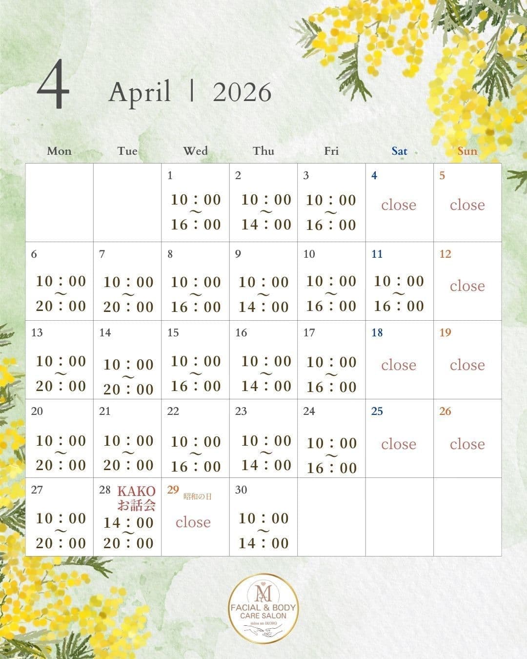 🕊mina an IKORO 4月の営業日のお知らせ🕊